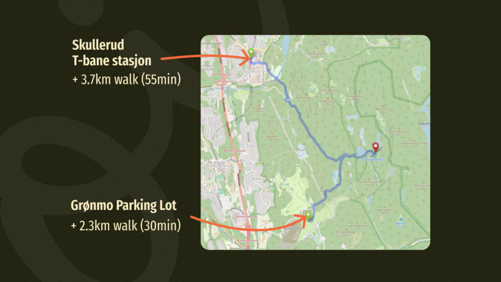 🚗 If you plan to drive, you can park at Grønmo Utfartsparkering and walk along the gravel road to Østmarkskapellet, ca. 2,3km.