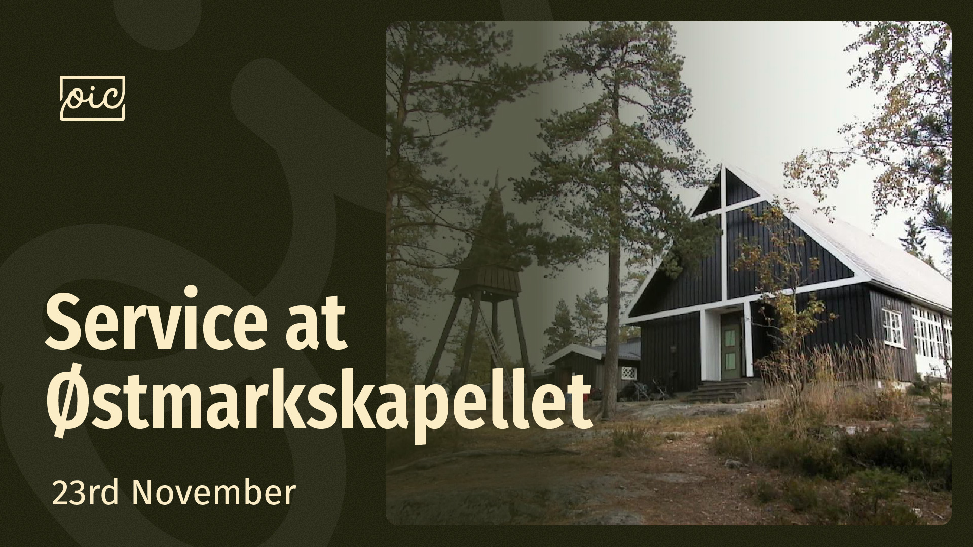We will not have a service at our usual location this Sunday, and we will resume our normal service at 16h on November 30, 2025 at Oslo International Church.
